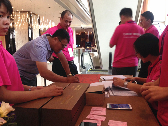 嘉宾朋友们签到,衣服我们已为您干洗消毒为工作人员点赞!
