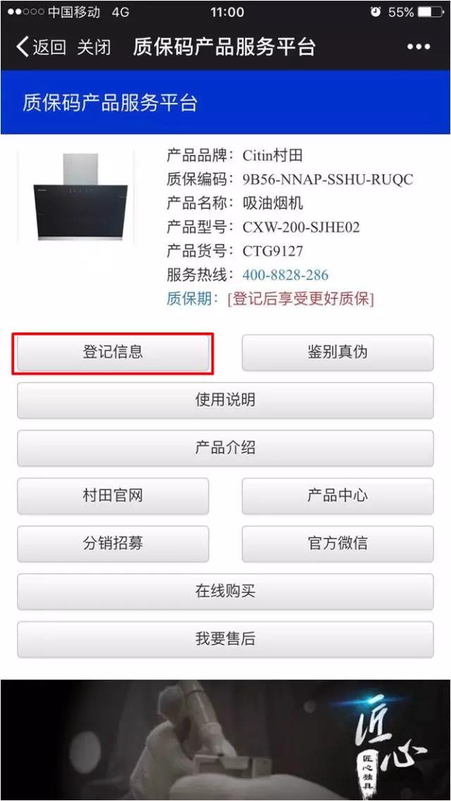 3、确定产品为正品后,完善信息,点击“登记信息”即可完善信息。一机一码,产品唯一的电子身份证码,登记过后不可再次登记!