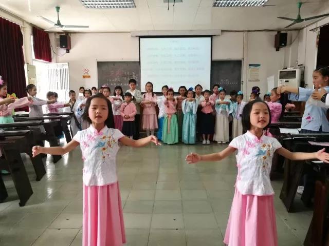 今天下午,小黄圃小学更迎来一批远道而来的客人,来自香港李金小学的师生交流团,期间,两校师生对经典诵读系列活动展开了学习交流。