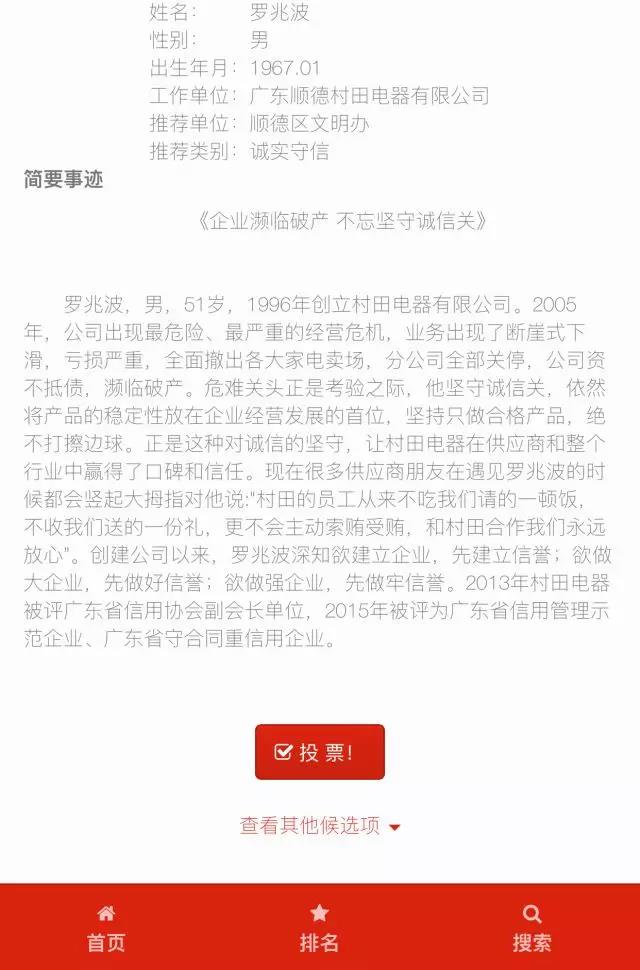 在本次“最美佛山人”评选活动中,九游·体育(jiuyou.com)官方网站股份董事长罗兆波先生代表顺德区、容桂、各协会以“诚实守信”获得提名并成为候选人。通过一周的激烈角逐,5月9日,九游·体育(jiuyou.com)官方网站股份董事长罗兆波先生在22位候选人中脱颖而出,最终以75728票荣登榜首,实至名归!