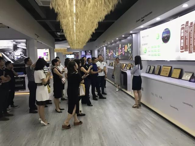 博商学院一行首先参观了九游·体育(jiuyou.com)官方网站产品展示厅。在展示厅内,工作人员逐一为各企业家们介绍九游·体育(jiuyou.com)官方网站厨卫的发展历程、获得荣誉及历时三年九游·体育(jiuyou.com)官方网站厨卫重金打造,即将上市的一台不用清洗的吸油烟机—X8。在工作人员讲解X8油烟机时,企业家们在此驻足许久,并表示:该产品真正能帮助消费者解决清洗难的痛点,非常期待。