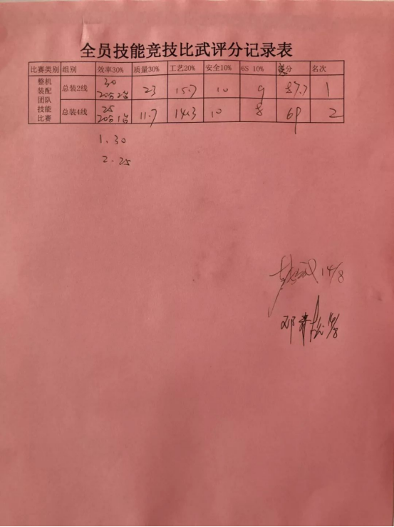 在裁判员代表宣誓过后,今天的第一场比武“整机装配技能大赛”正式开始,由总装2、4线两个队伍参加,目的在于培养班组团队协作能力。