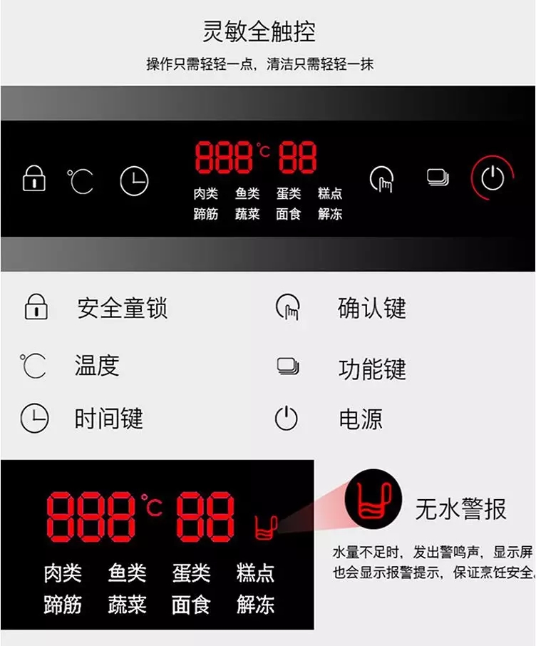 多功能操作只需轻轻一点,人性化设计,“蒸”的省心。