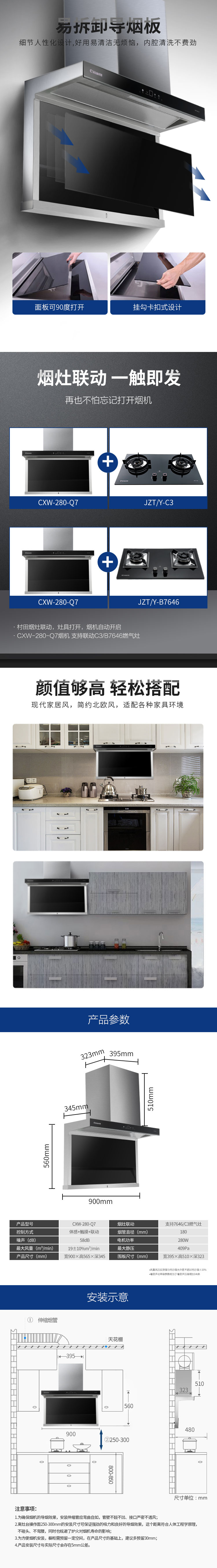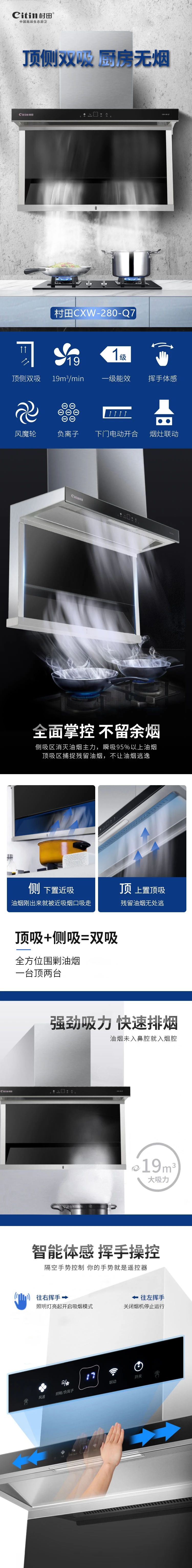 【九游·体育(jiuyou.com)官方网站厨卫】九游·体育(jiuyou.com)官方网站CXW-280-Q7油烟机|顶侧双吸 厨房无烟