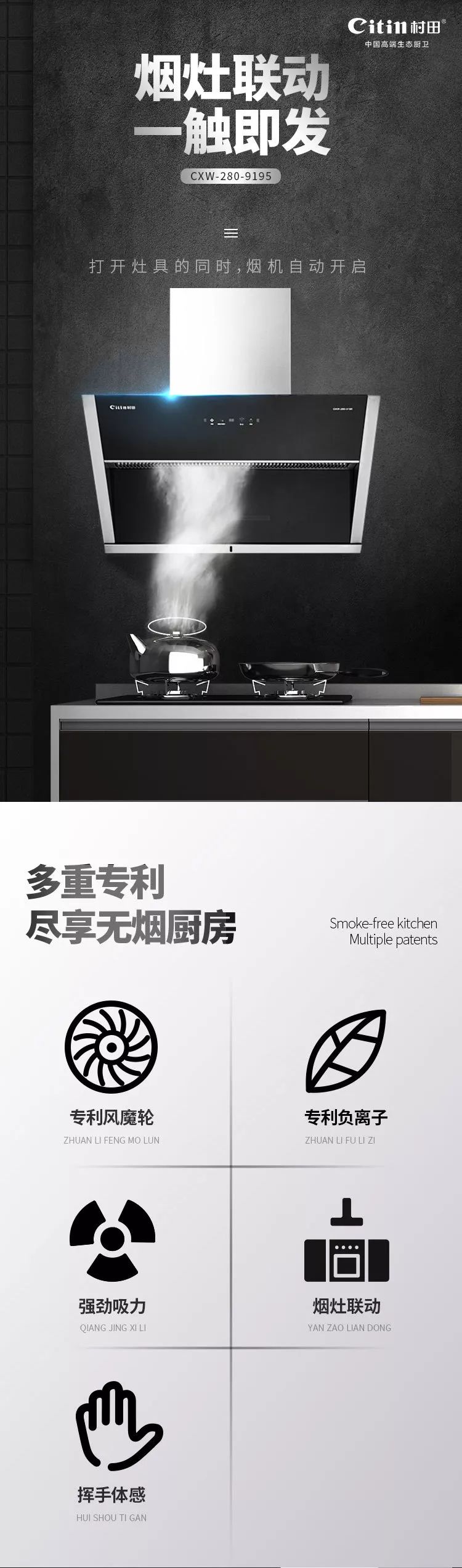 【九游·体育(jiuyou.com)官方网站厨卫】九游·体育(jiuyou.com)官方网站CXW-280-9195油烟机 | 烟灶联动,一触即发。