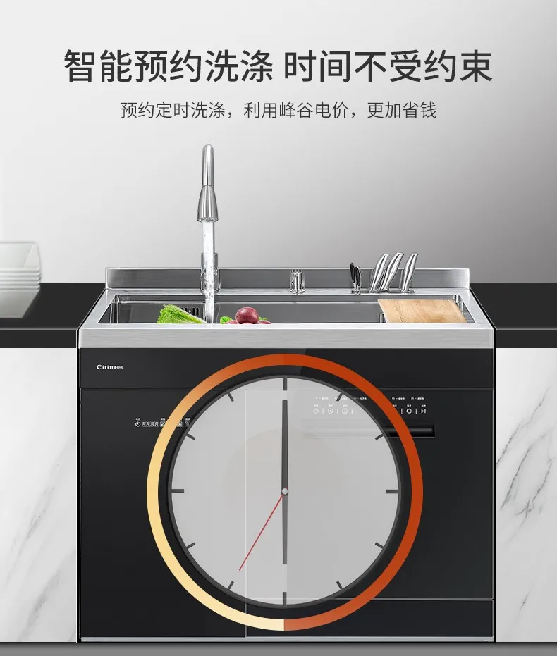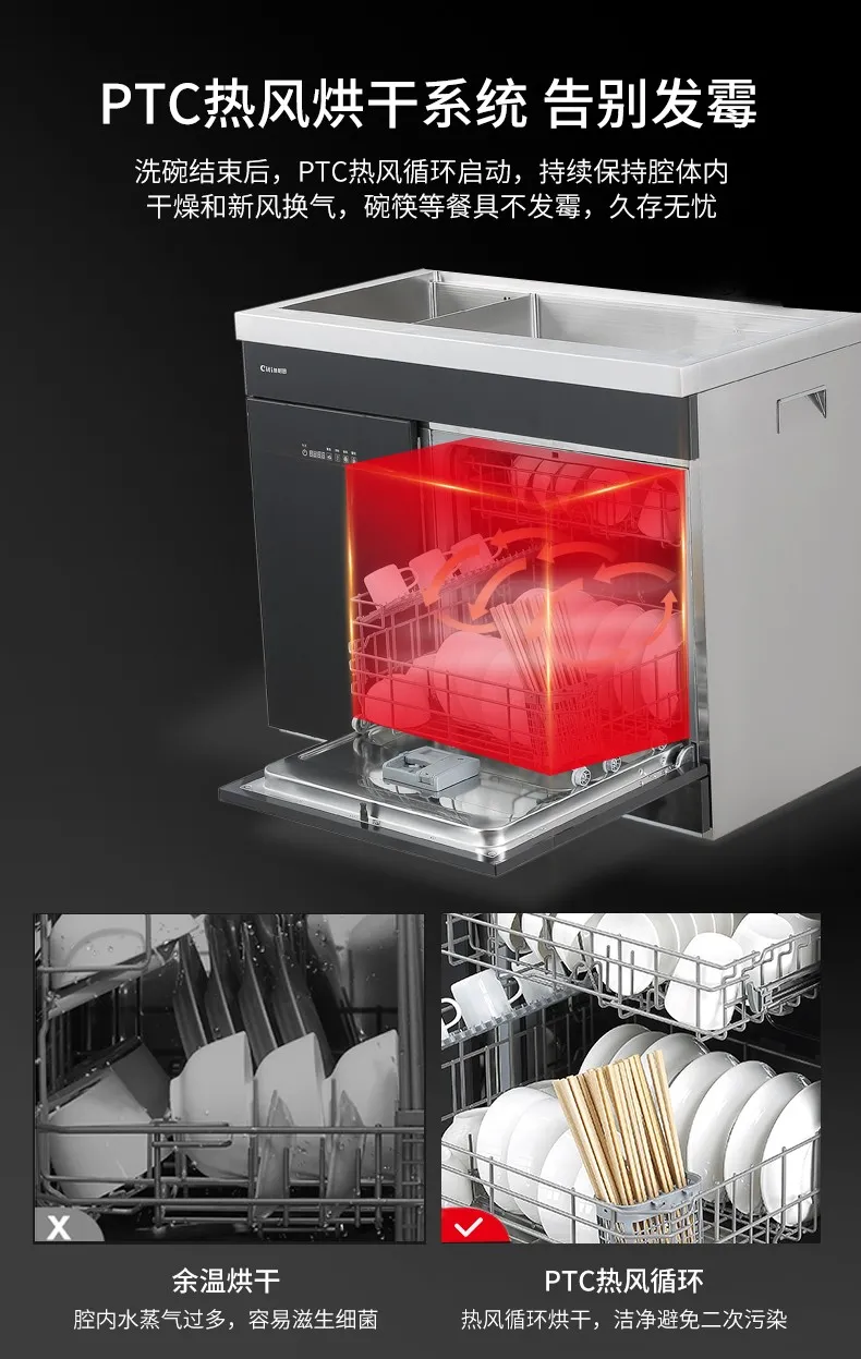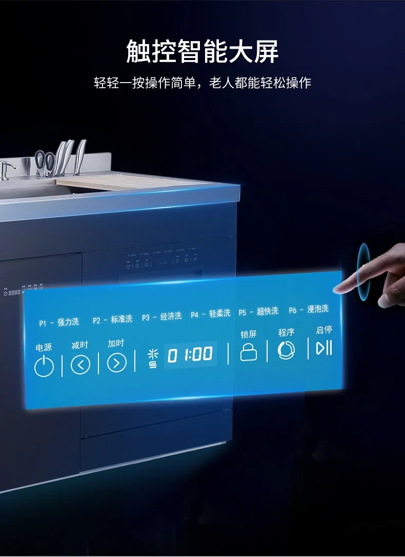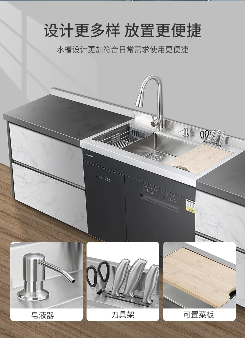 全新的水槽洗碗机产品,一体式嵌入,安装、换装更便捷,化繁为简,功能不减,操作方便免弯腰,六大餐具清洗模式,餐前放心,餐后省心,果蔬清洗模式,拒绝农药残留,她,样样精通,给家人健康树立安全屏障。
