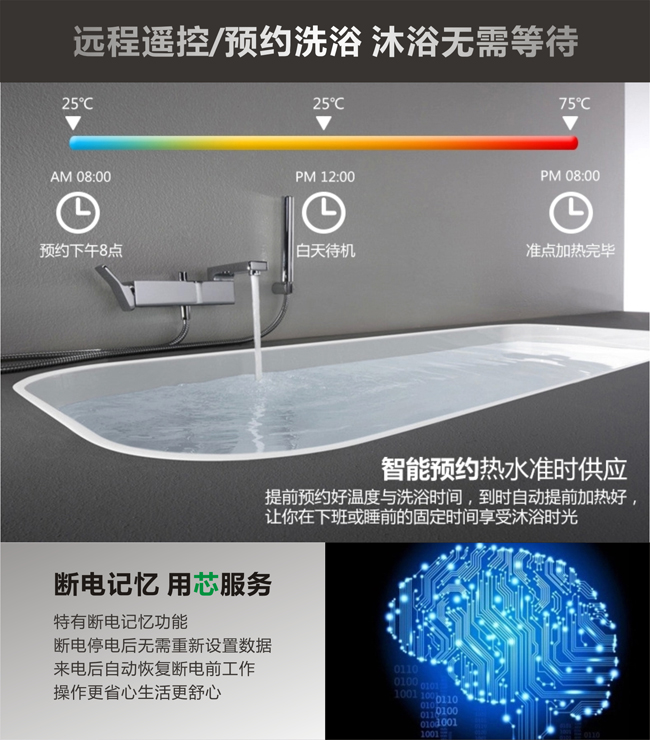 分人洗、断电记忆、晨浴晚浴、遥控等十五项功能选择