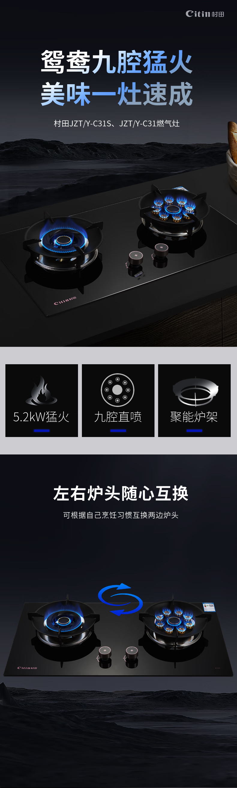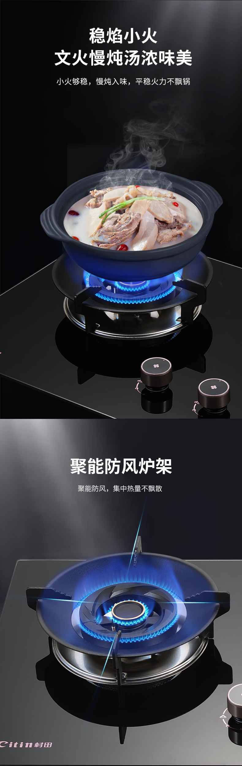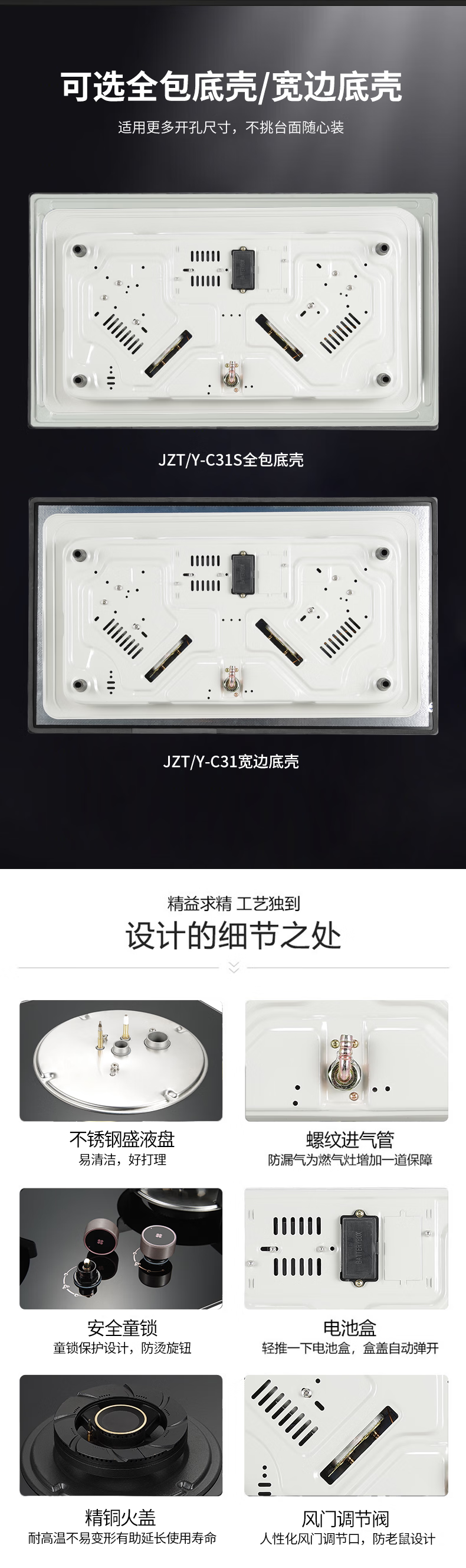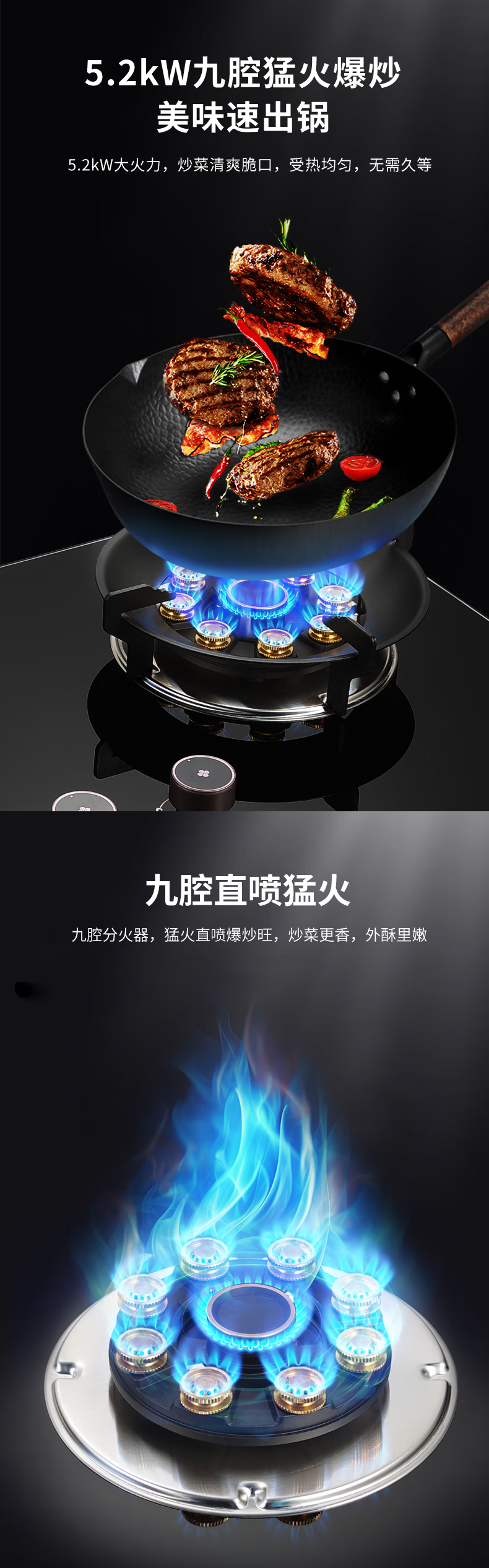 +126#直火+聚能炉架+双腔保洁炉头+不锈钢水盘+满边底壳+2代旋钮+九腔直喷+左右互换+黑色包边