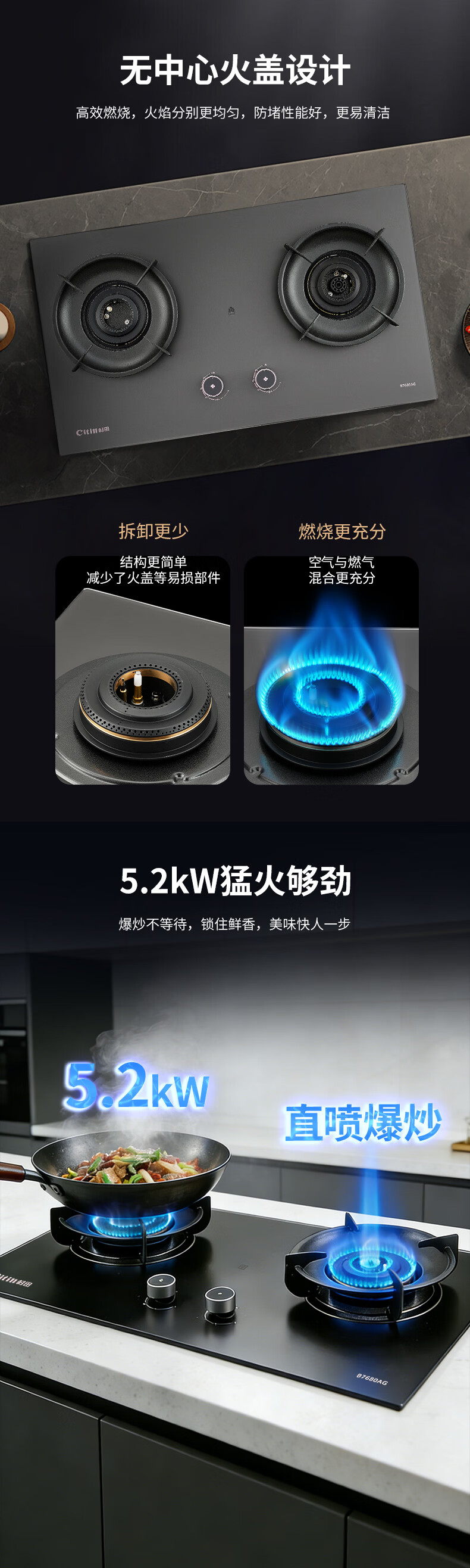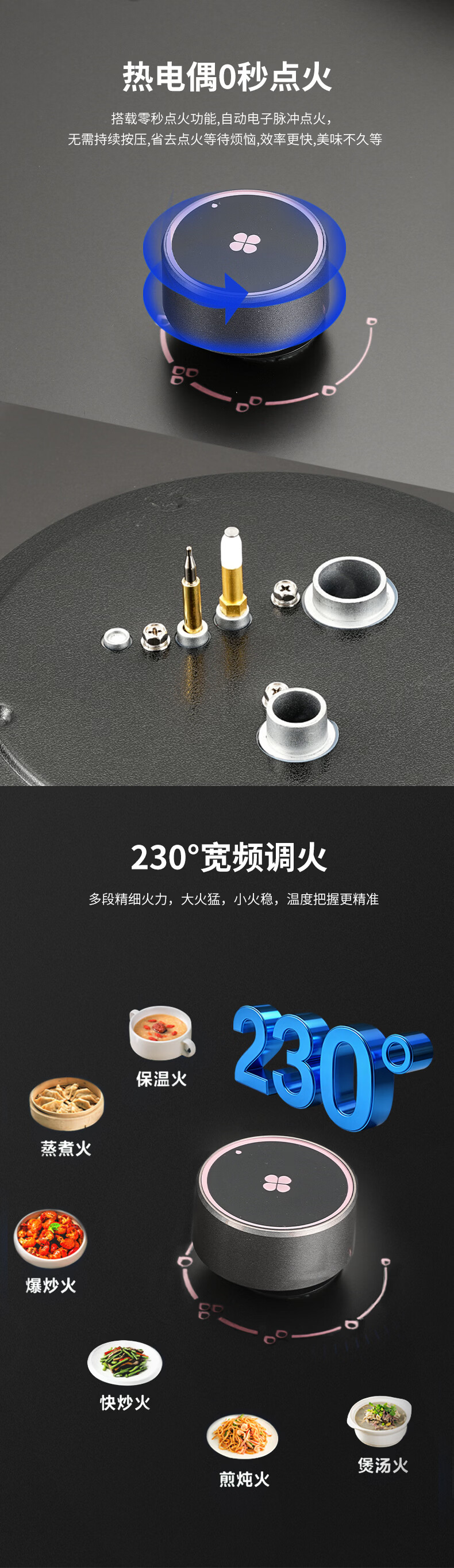 +零秒点火 +直喷猛火 +热电式熄火保护 +防爆钢化玻璃面板 +铜火盖