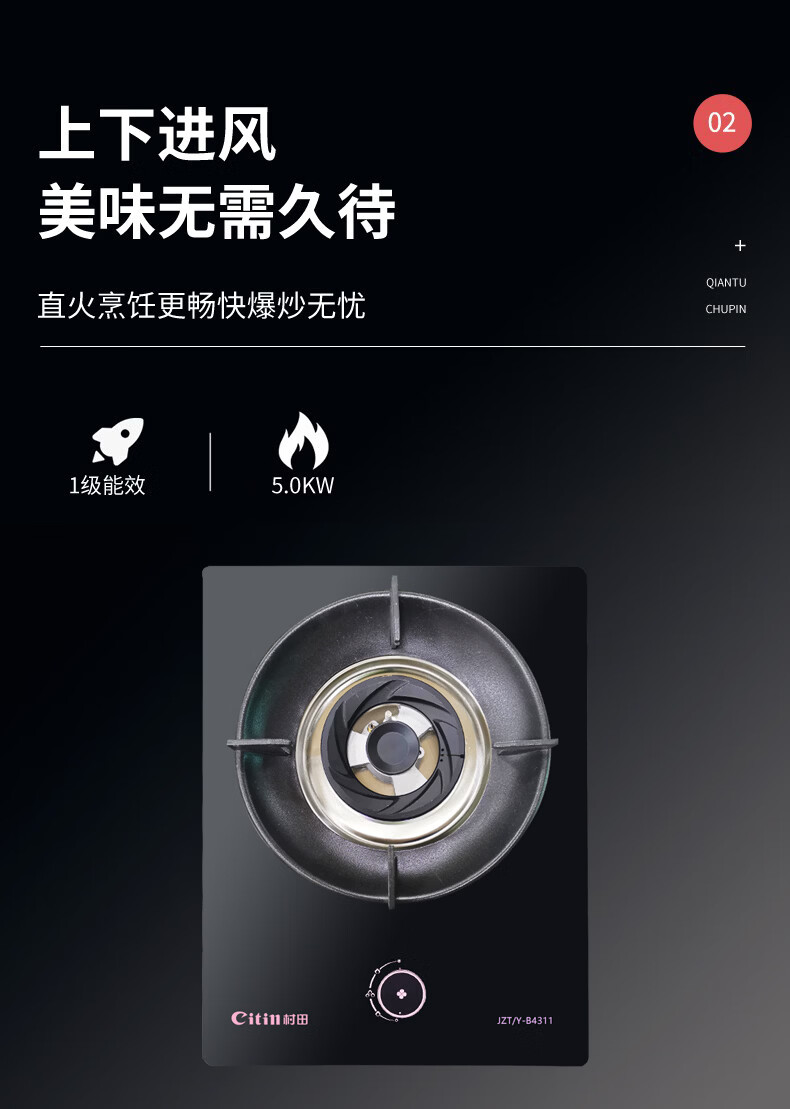 +上下进风 +聚能炉架 +安全熄保 +不锈钢水盘+保洁炉头+125#直火+专属旋钮1.0