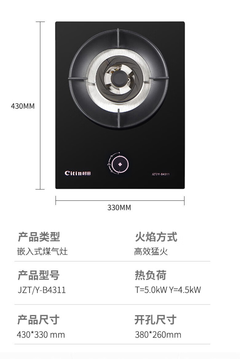 热负荷T 5.0kW热负荷Y 4.5kW面板尺寸 长430x宽330x厚6mm点火方式 脉冲点火熄保方式 热电偶