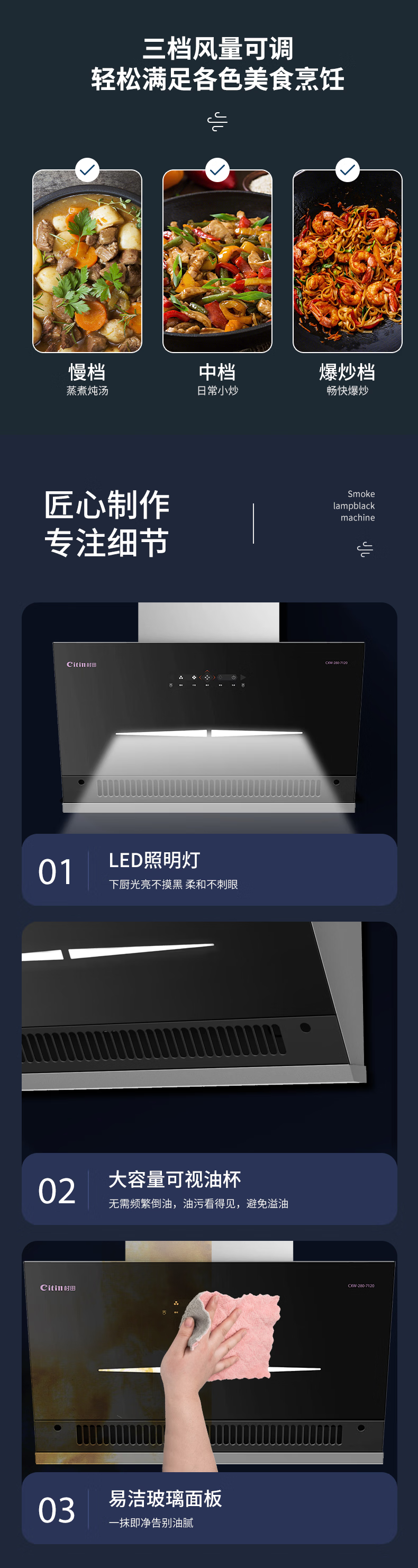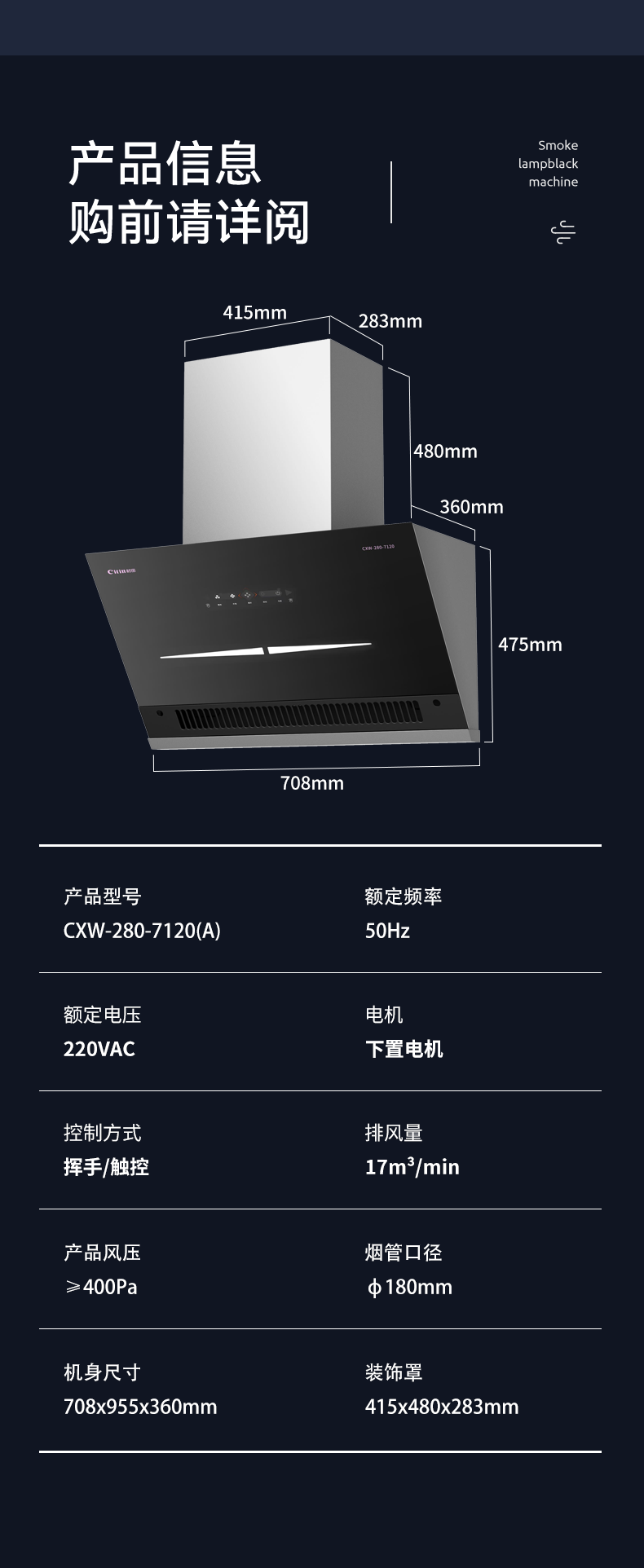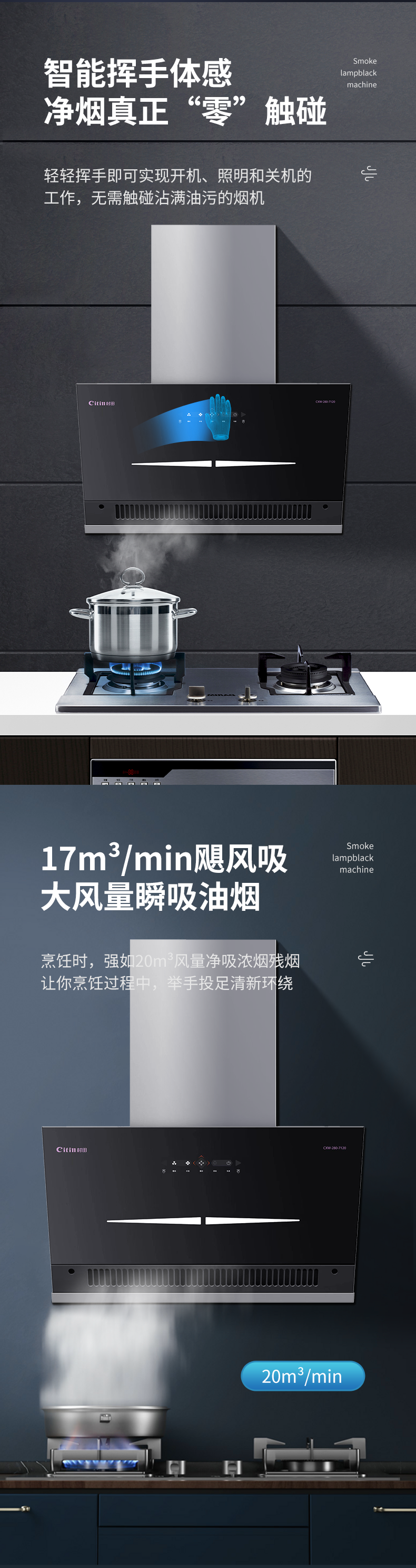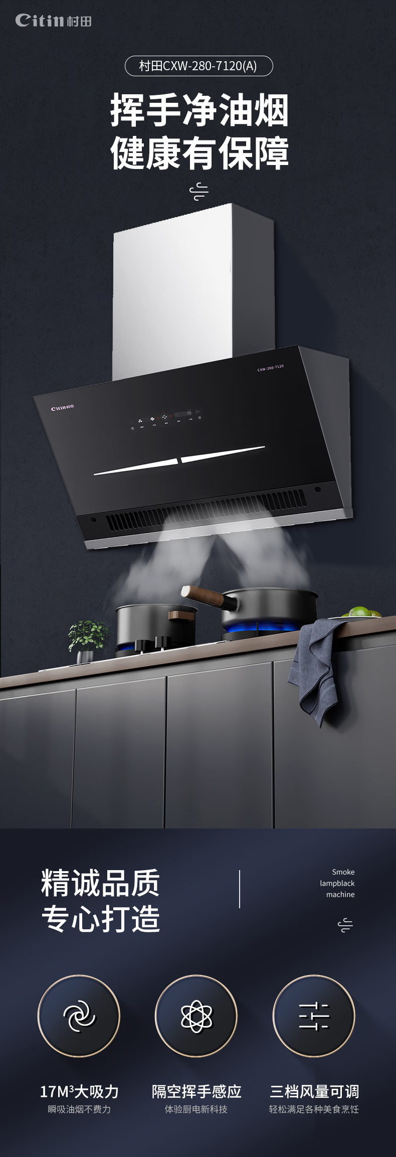 +不锈钢机身 +挥手启停 +低位近吸 +拆卸围板