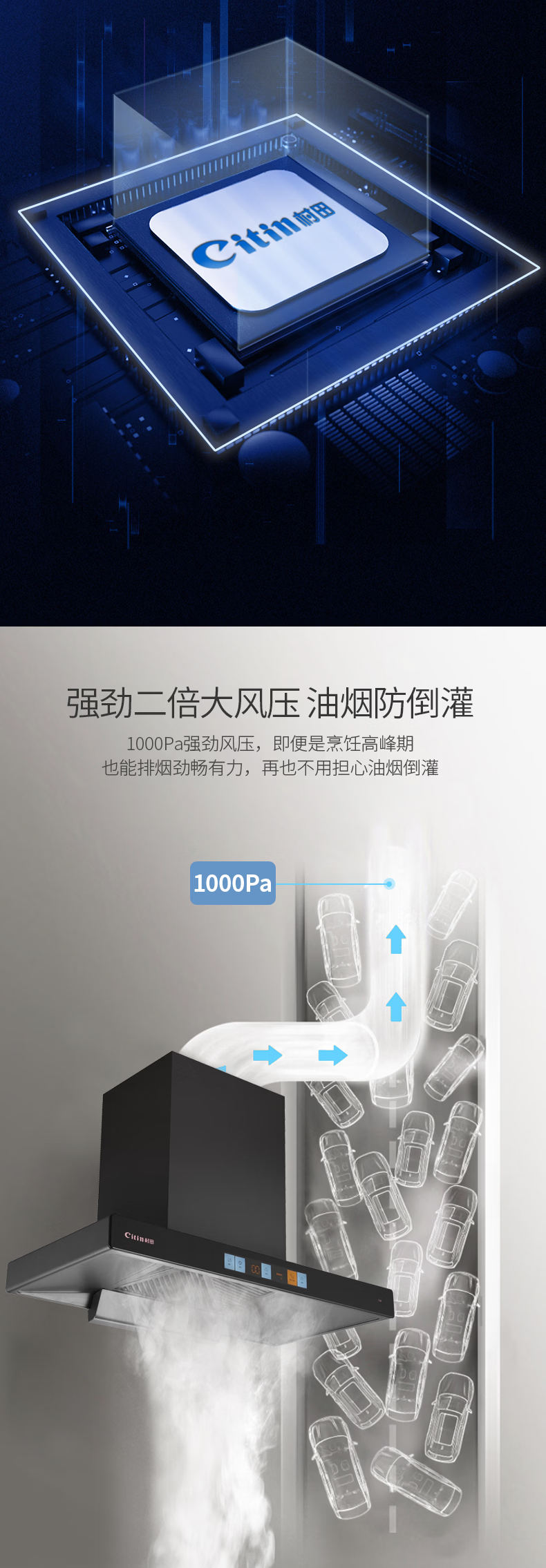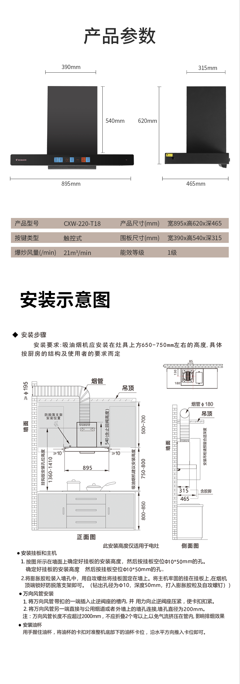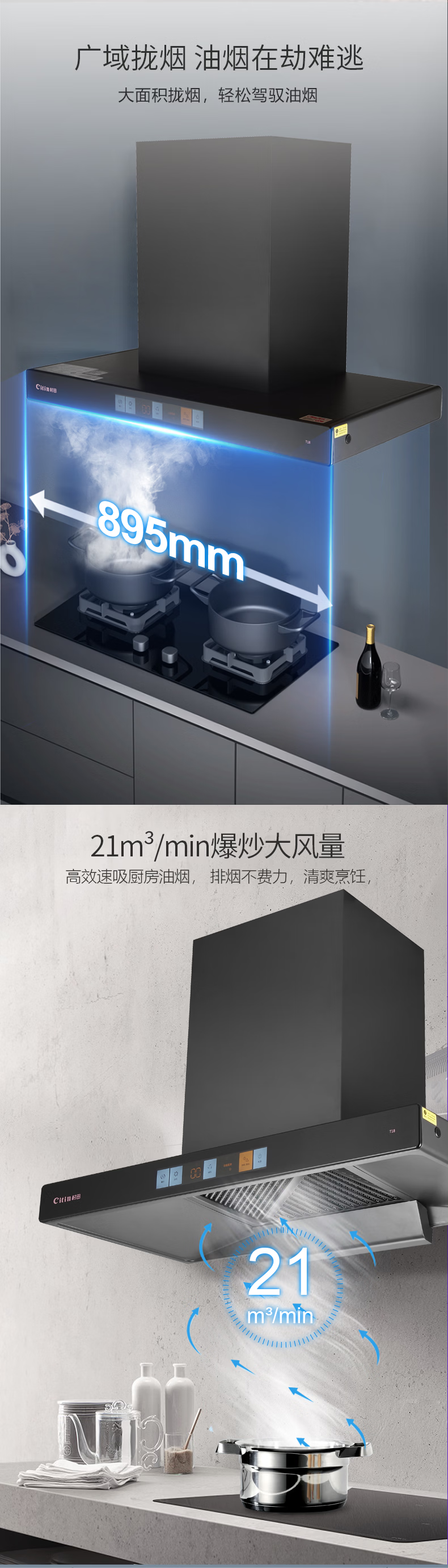+挥手体感 +智能变频+彩屏开关 +风魔轮+负离子 +双层油网+双倍风压 +热清洗