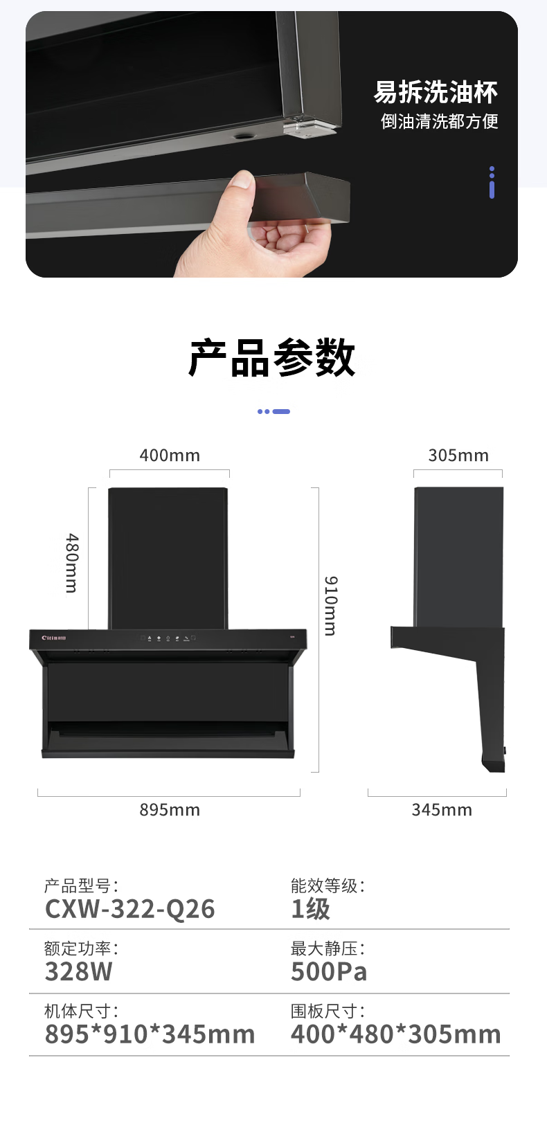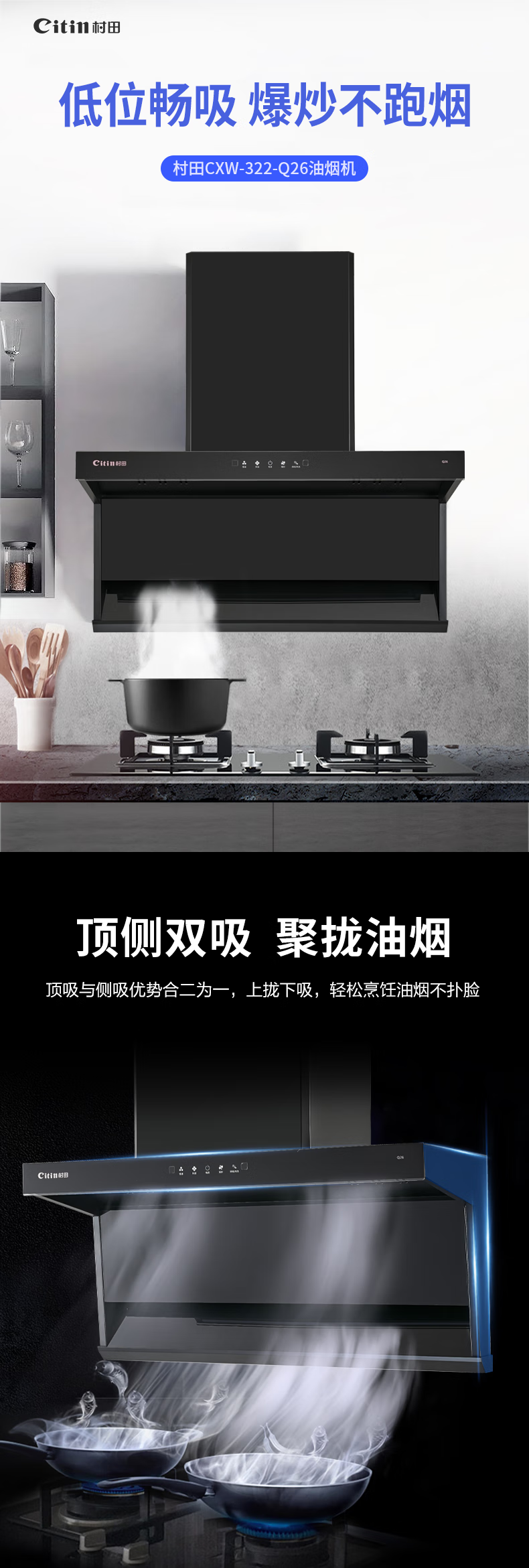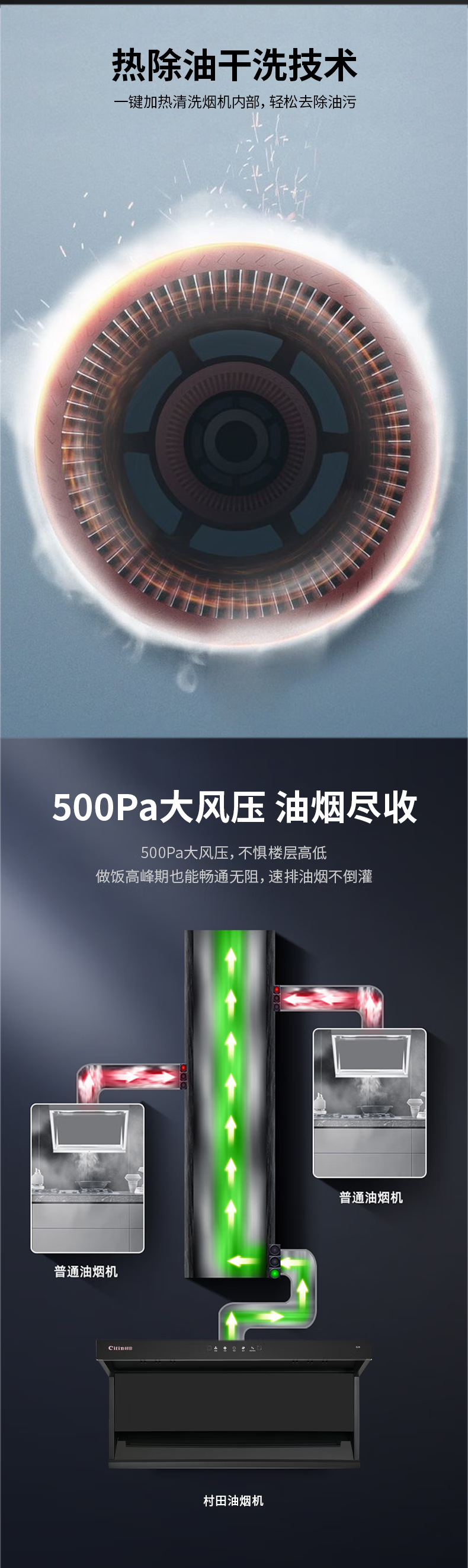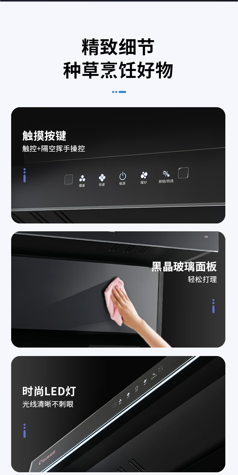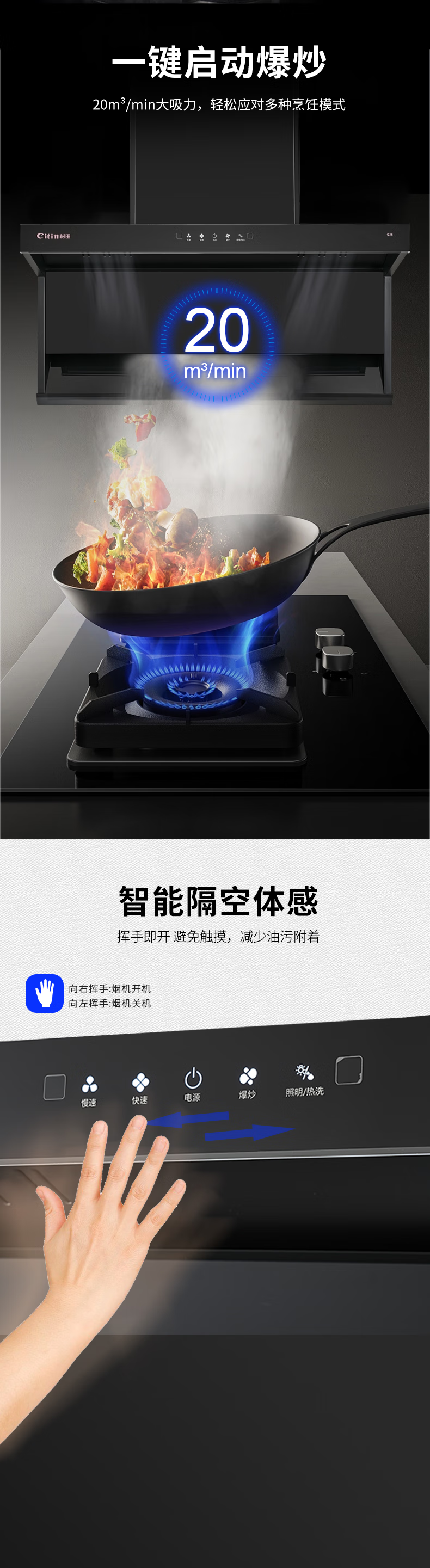 +20m³大吸力 +一键热除油 +易拆玻璃 +顶侧双吸 +一键爆炒