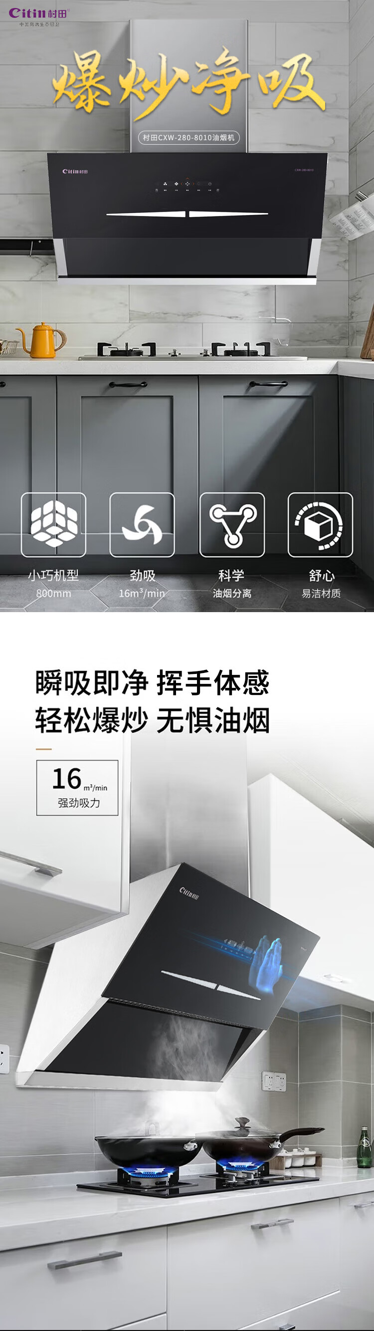 +挥手体感 +一键爆吸 +长条灯带+下置系统+低位近吸