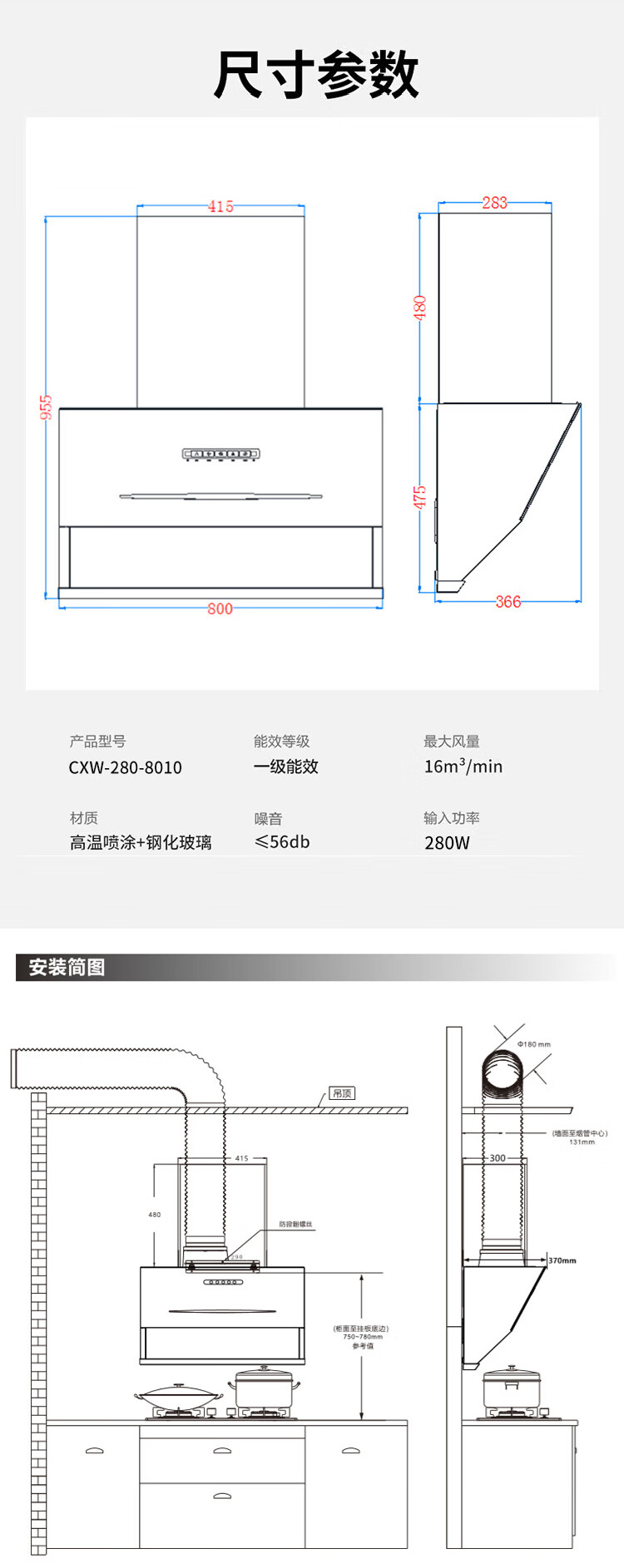 国板尺寸:宽415x高480x深282mm额定验入功率:280W