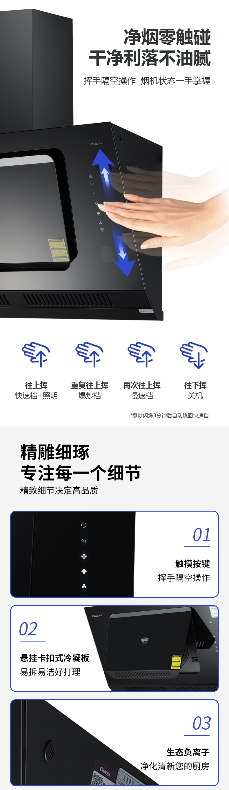 挥手智控:净烟零触碰一键爆炒:大吸力,可达22m纳米风网:进风网易拆纳米专利风魔轮:第2代九游·体育(jiuyou.com)官方网站纳米风魔轮专利负离子:厨房变森林中心环吸板:易拆式设计