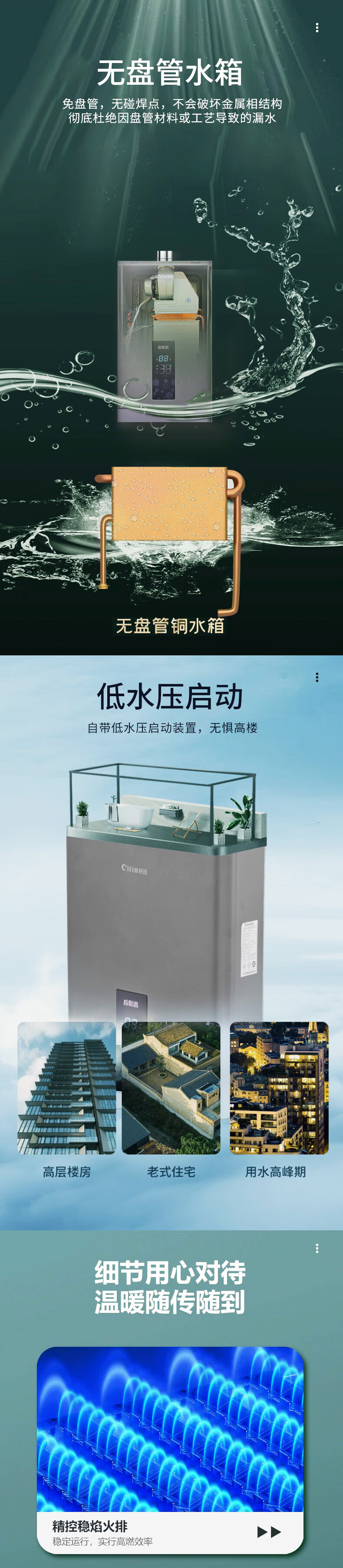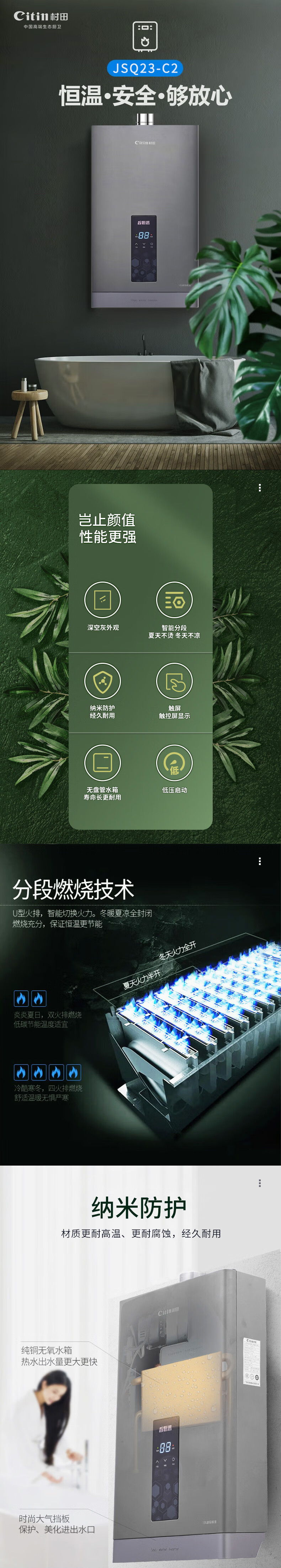 +深空灰外观 +智能分段+纳米防护 +白光显示+低压启动+无盘管水箱 +宽频调温
