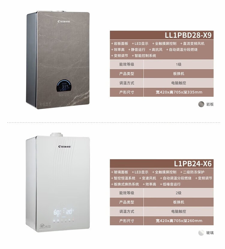 额定热负荷 24kW热水产率 12.5kg/min产品尺寸 宽420x高705x深260mm控制方式 电脑触控适用户型 <180㎡