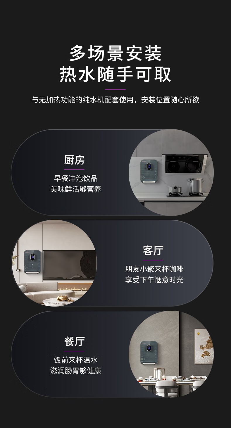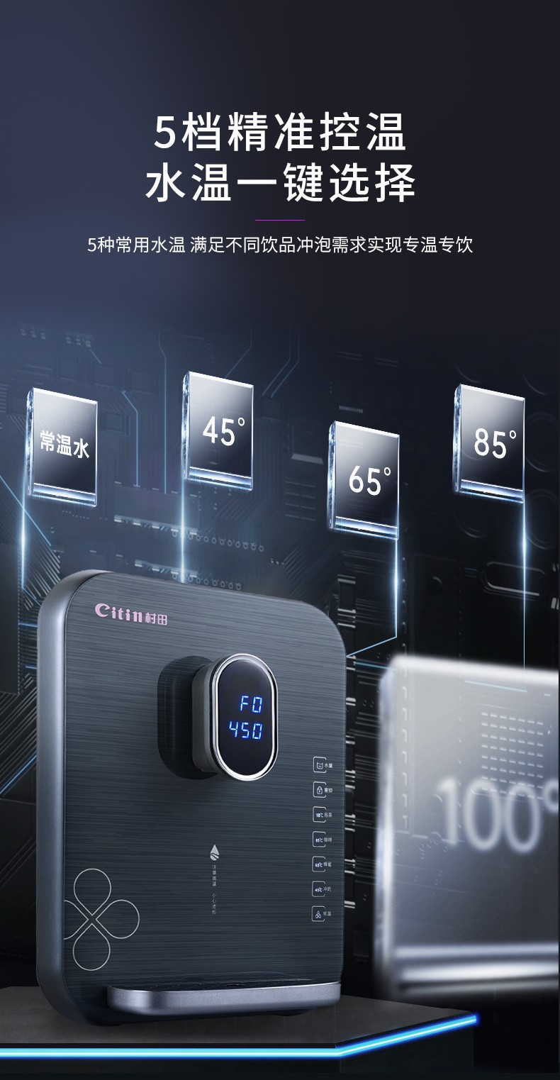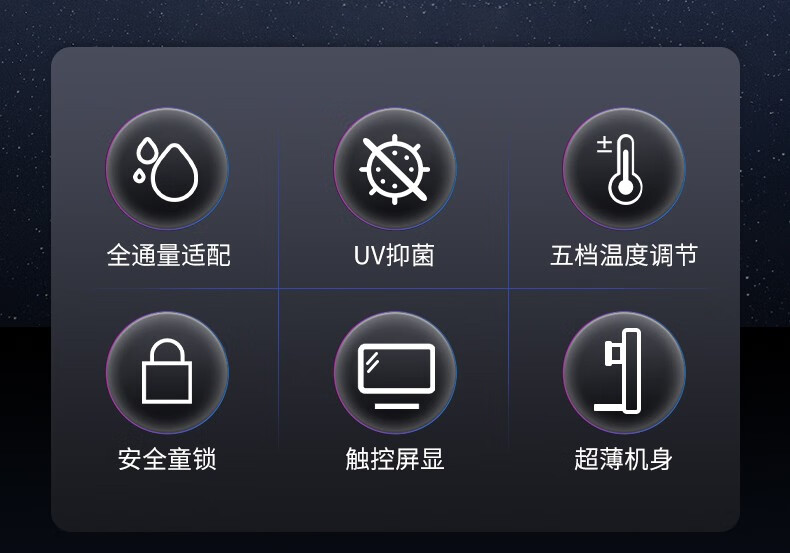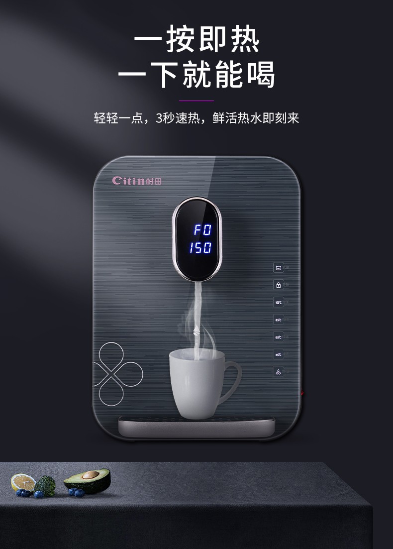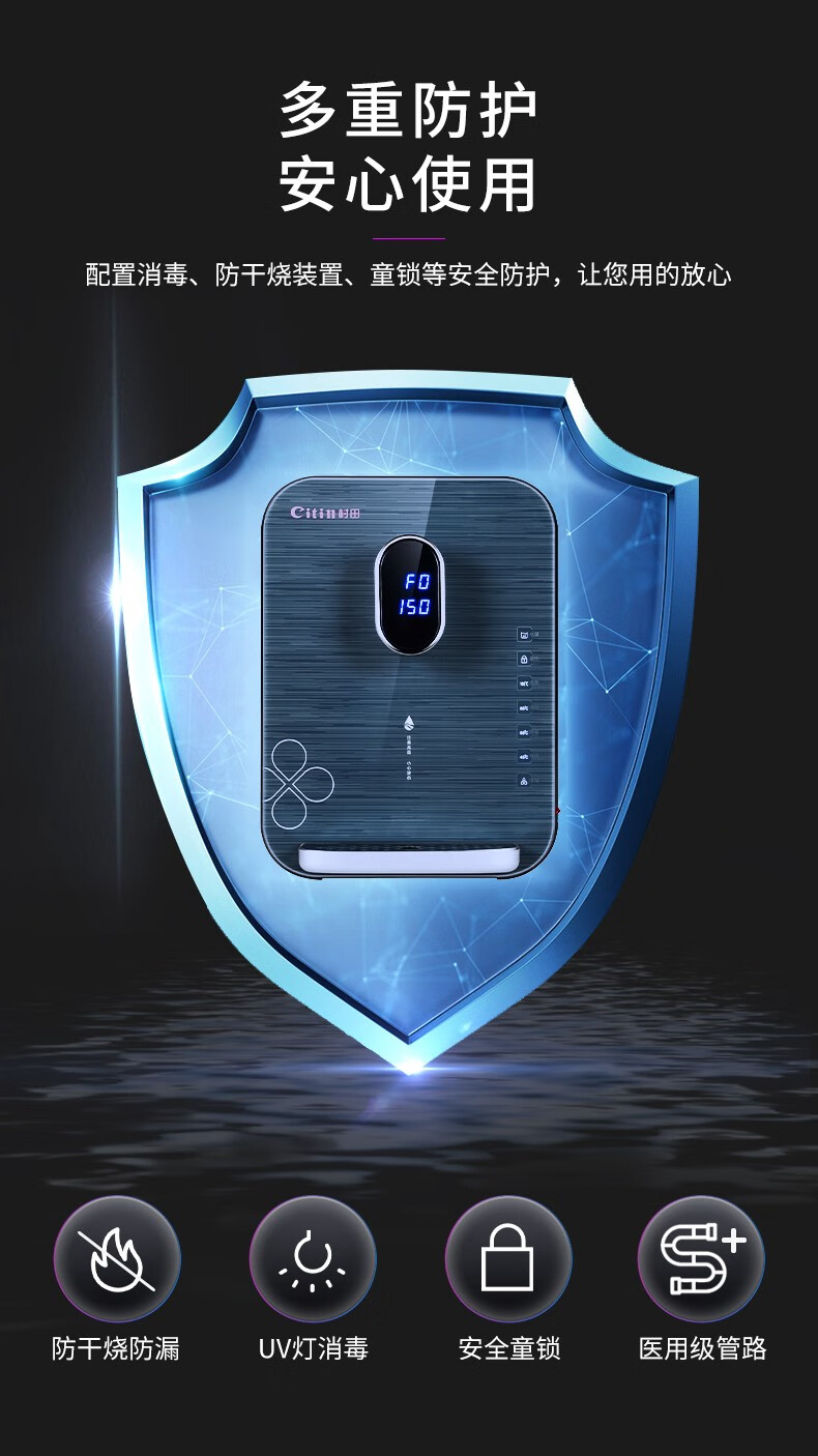 +纤薄绿色 +大屏显+五档控温+五档调水+干烧技术+安全童锁 +UV灯消毒 三秒速热+出水量大 +医用材料+节能待机