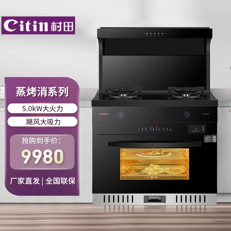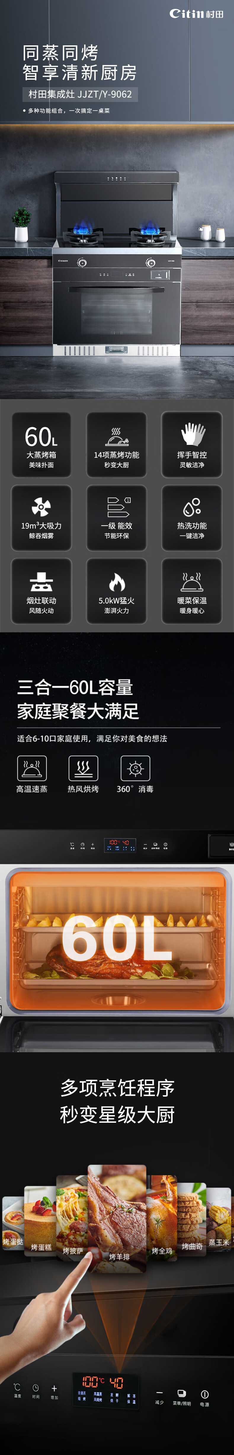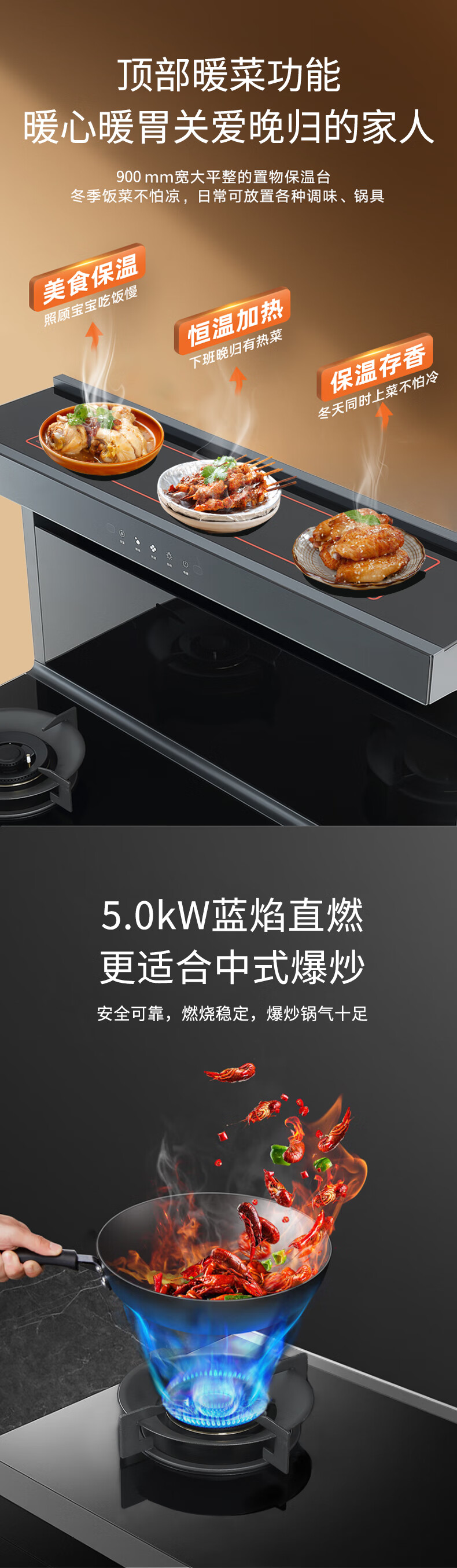 蒸烤一体塑封电机热清洗+联动暖菜宝+置物平台飞机+铝座铜盖圆形隔热炉架+防火墙延时点火
