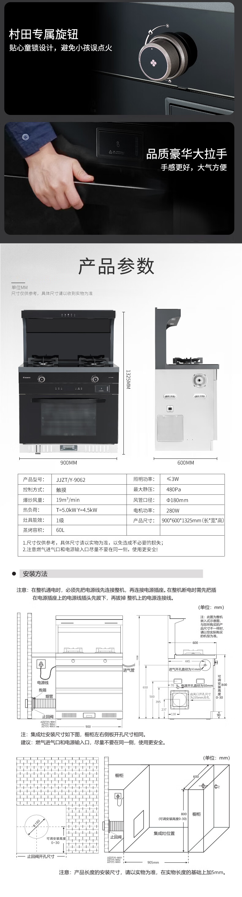 最大静压: 520Pa 负荷:T=5.0Kw Y=4.8Kw熄保方式:双线热电偶蒸烤容积:60L产品尺寸:900*600*1325