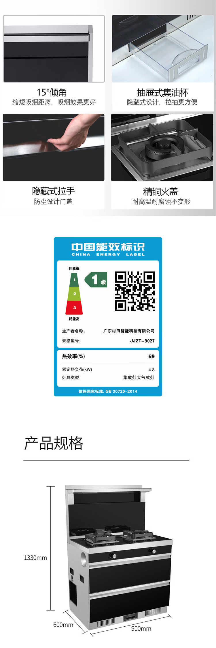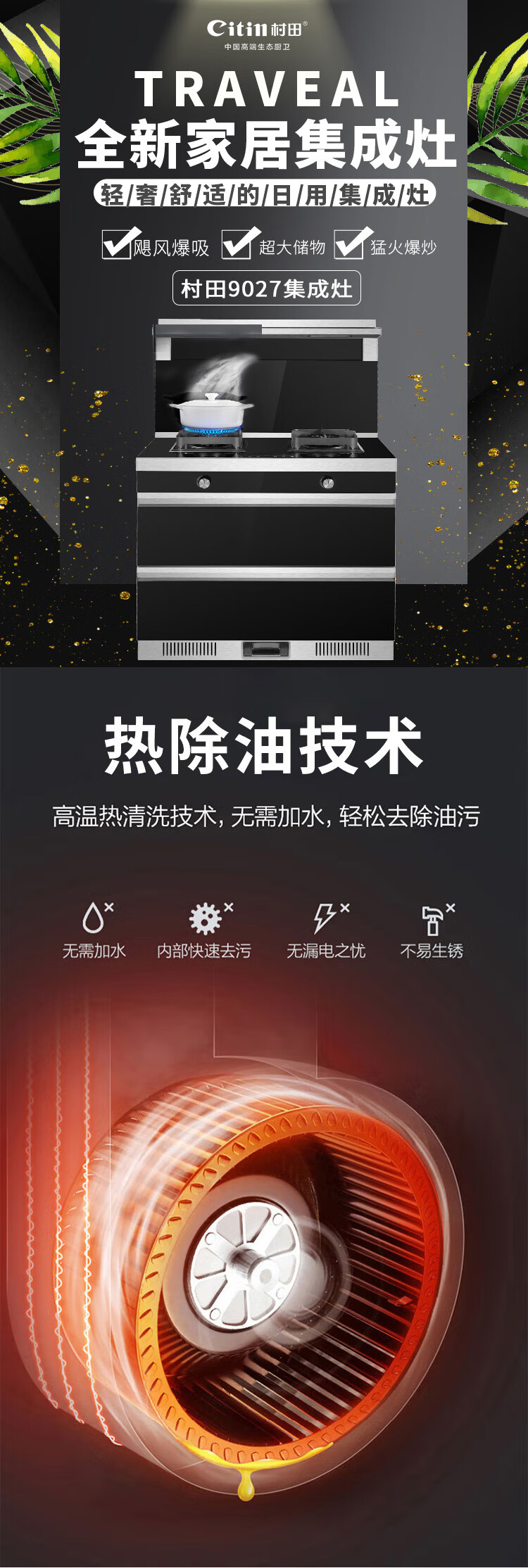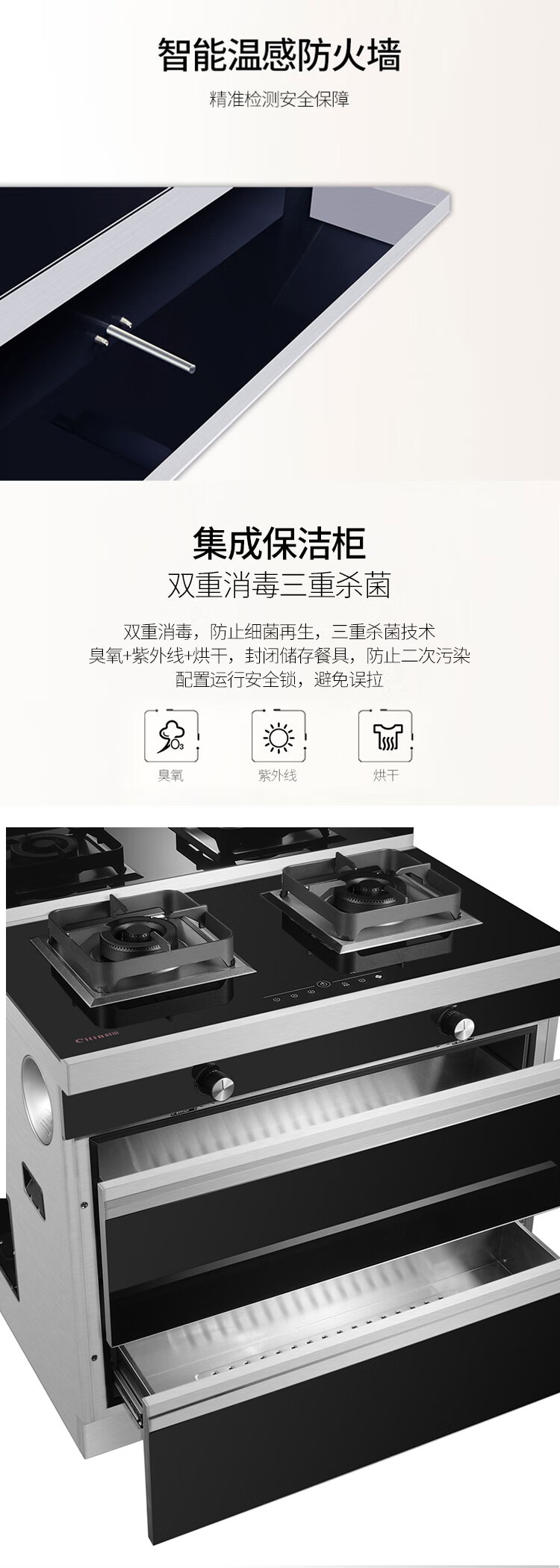 +烟灶消存 +烟灶联动 +暖菜保温+热洗功能+触控开关+全铝炉头+四方锅架