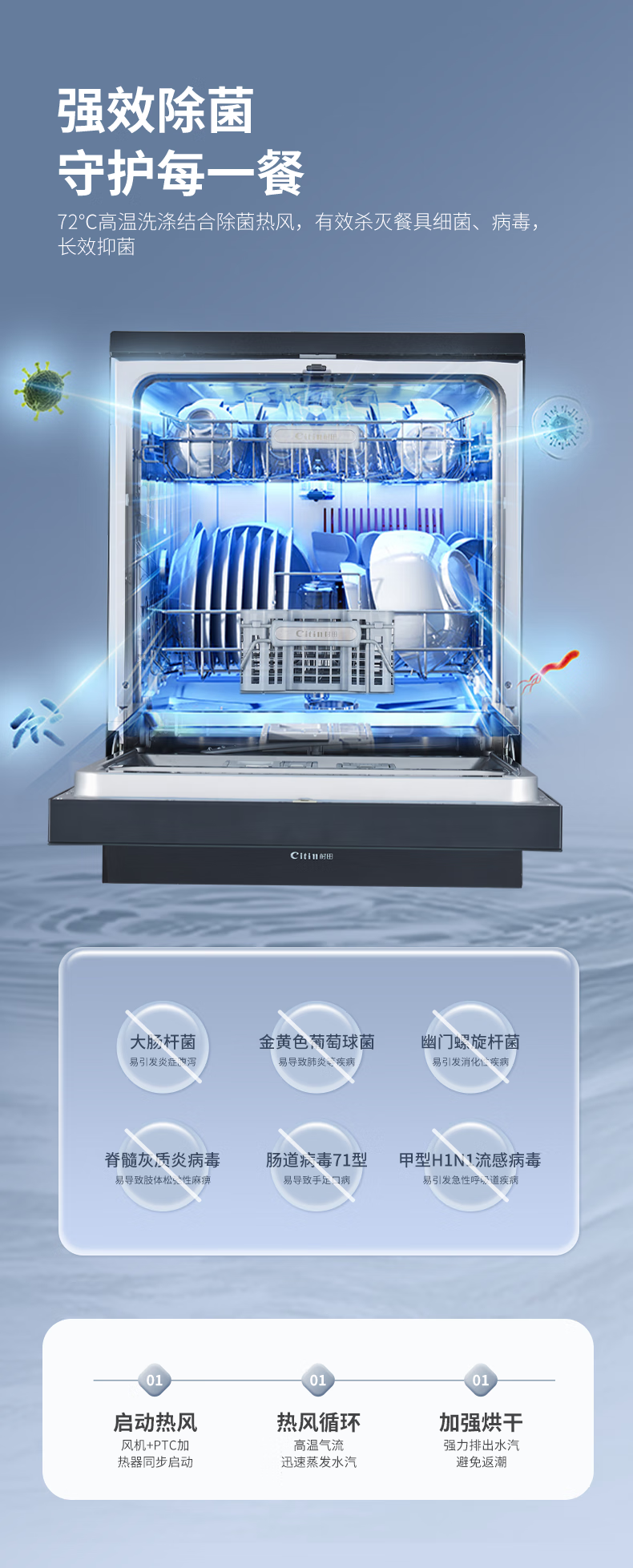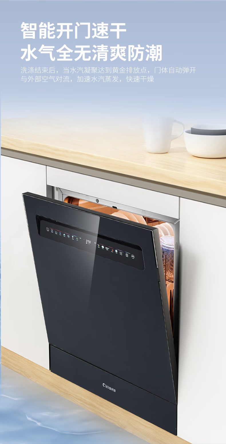 热风+自动开关门+余温冷凝 智能洗碗机 家用嵌入式台嵌两用洗碗机 1级水效